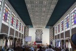 For the most part, the prayer responses were always up on a screen, making it easy to follow along. (We’ve seen that occasionally at home and it makes so much sense. Why waste paper printing it out each week?) Participation and size of the crowd varied. Some sermons were better than others.
